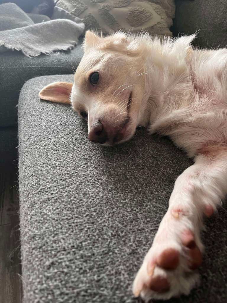 Albin har en väldigt mysig personlighet. Han är pigg och glad och lekfull, men också lite envis.😉 Han ”pratar” mycket med olika typer av ljud. Han är orädd och nyfiken. Han har en ganska lugn energinivå och nöjer sig med vanliga promenader. Dessutom är han en ljuvligt söt liten krabat. ❤️