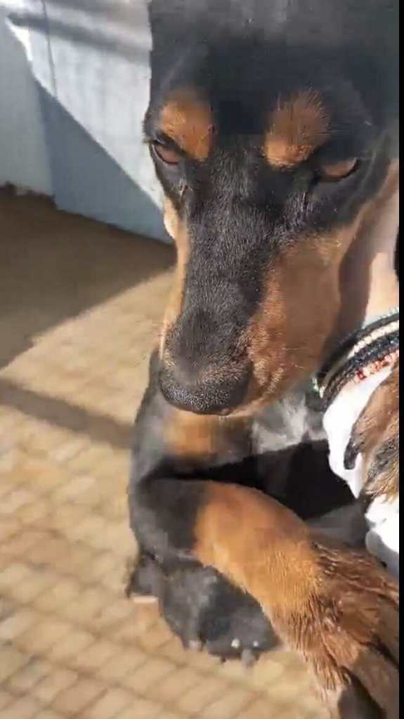 Trots allt hon gått igenom är Artemis en otroligt kärleksfull och vänlig hund. Hon älskar människor och söker hela tiden kontakt – hon vill så gärna få närhet, kramar och kärlek. 🥹