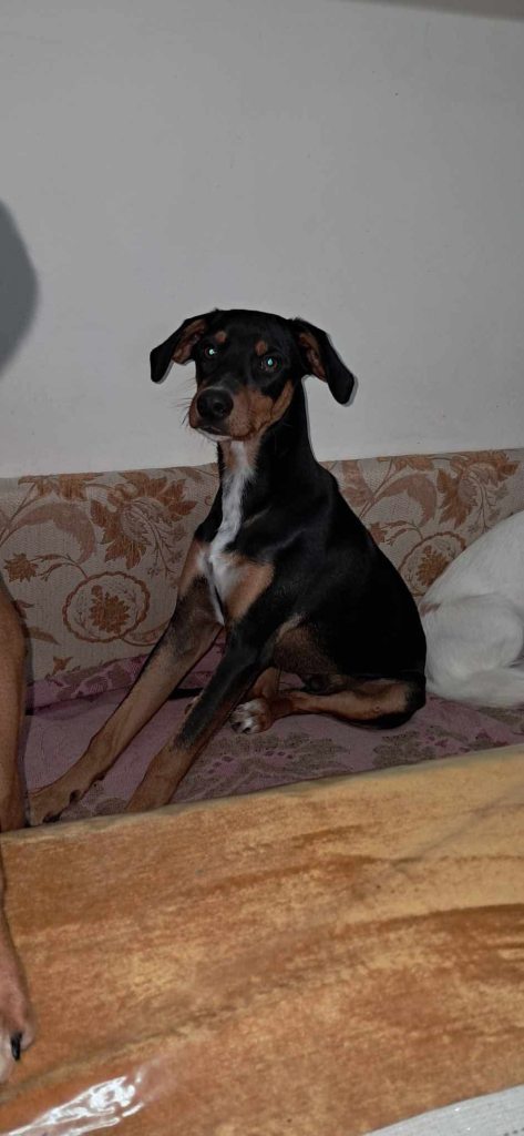 Dino är en nyfiken och energisk kille, har ett öppet sätt mot människor och fungerar mycket bra tillsammans med andra hundar. Även möten med katter och barn går bra.