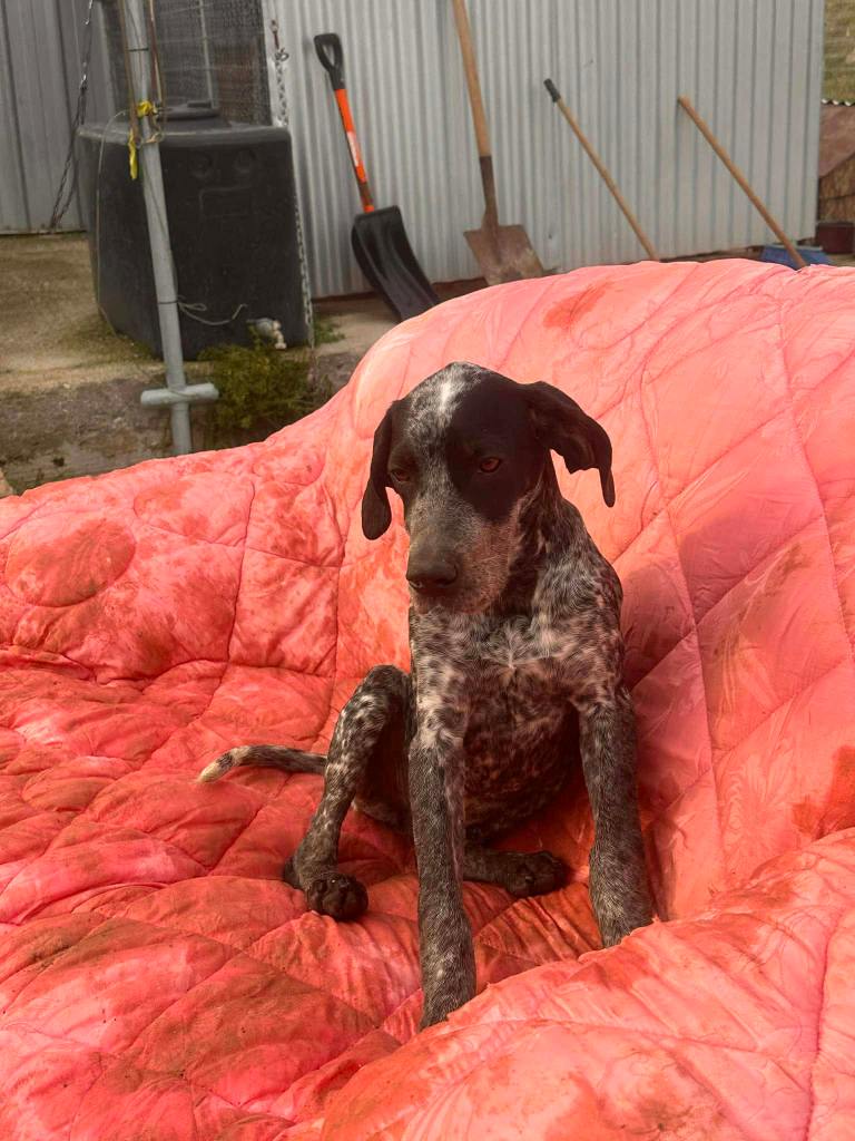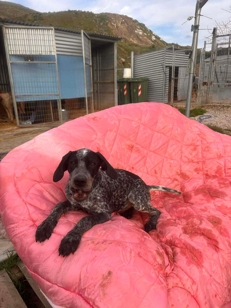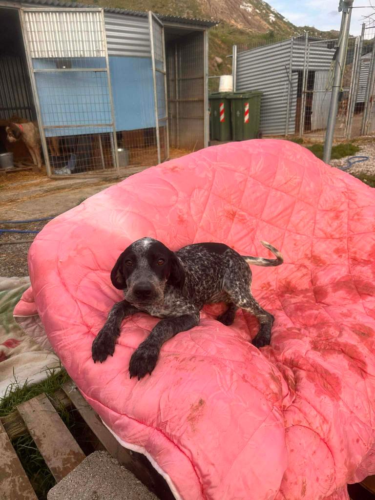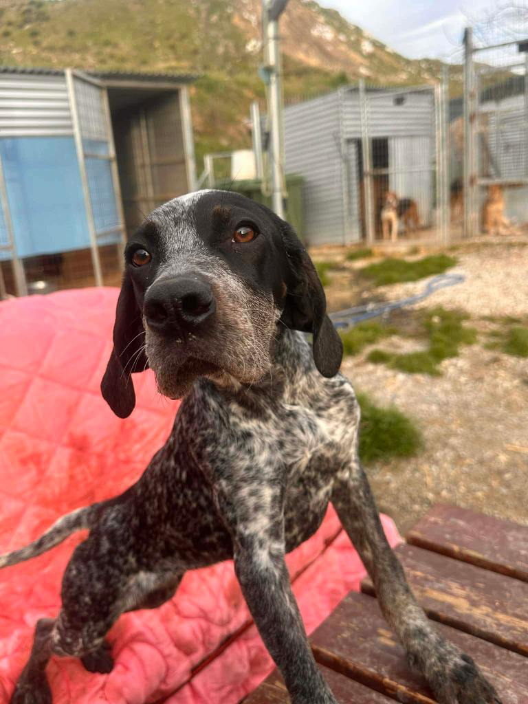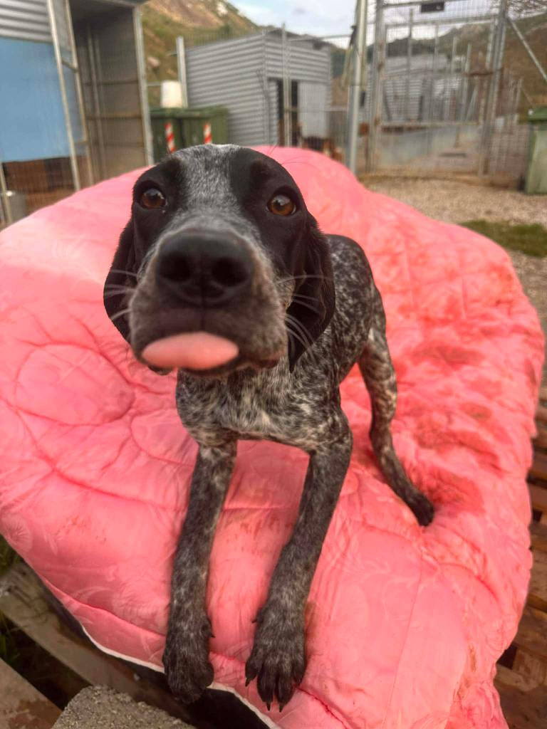 Lilibet är troligtvis en pointerblandning (inga garantier😅) och hon och hennes tre syskon Onyx, Serena och Frankie kom i februari i år till ett shelter vi samarbetar med. Alla hennes syskon har hittat sina nya hem, medan Lilibet fortfarande väntar på sitt!🤞