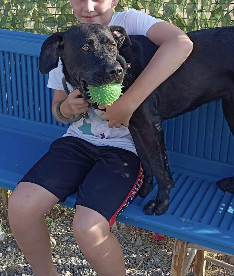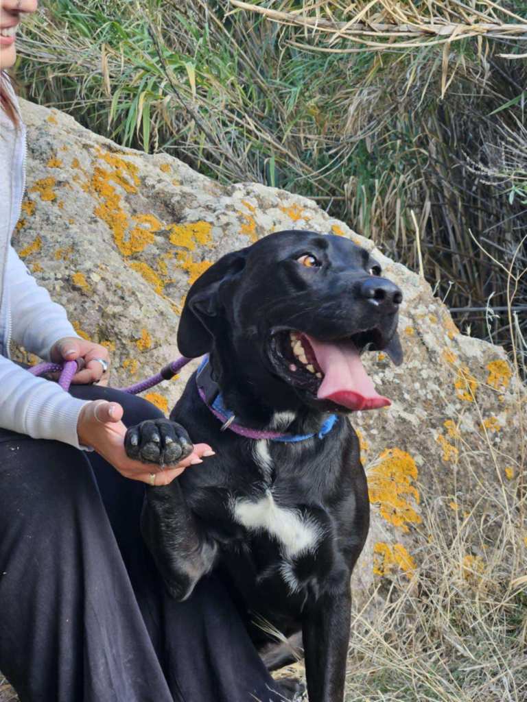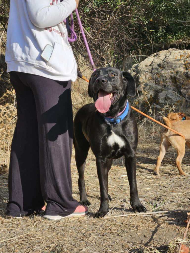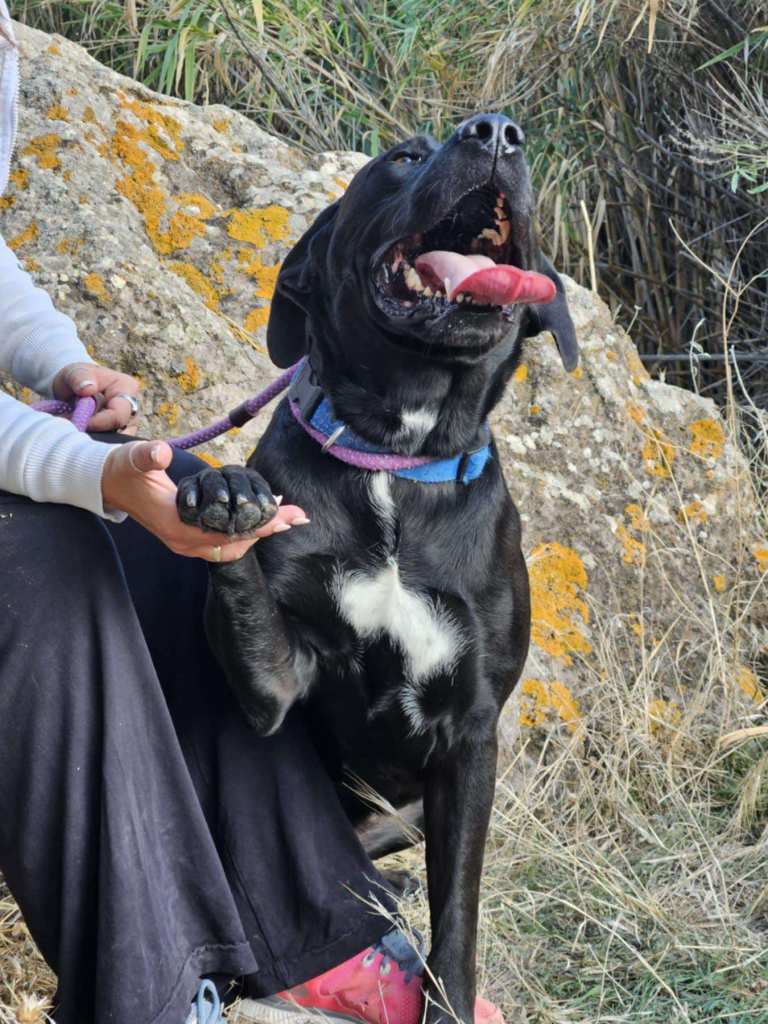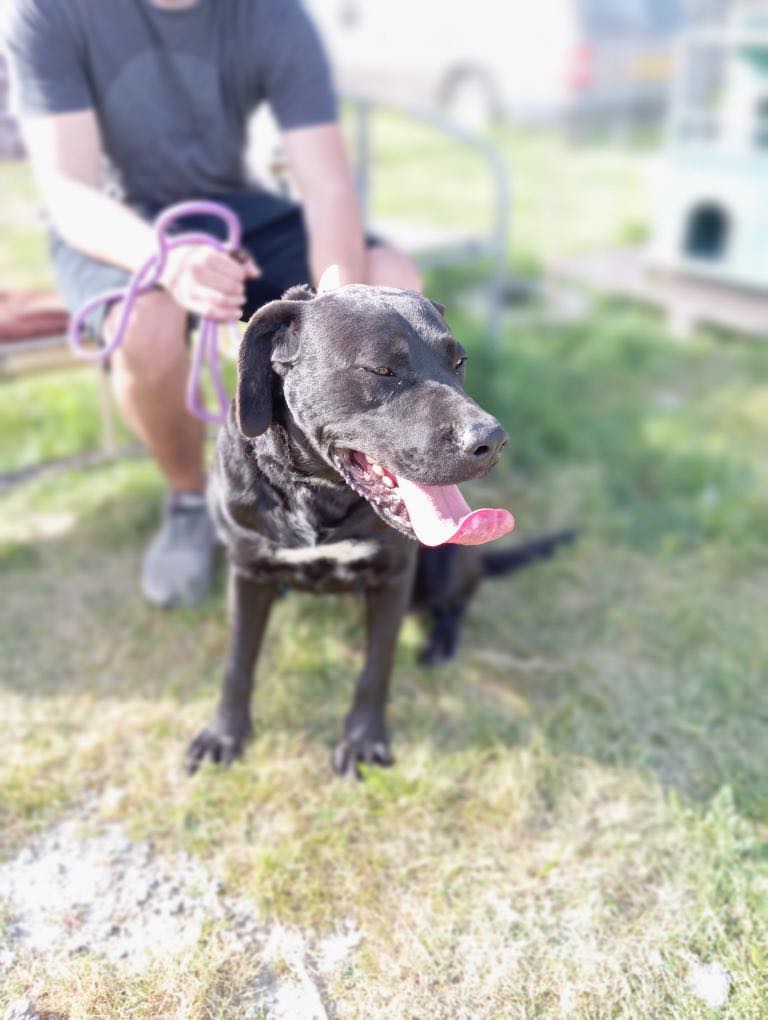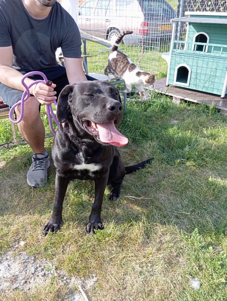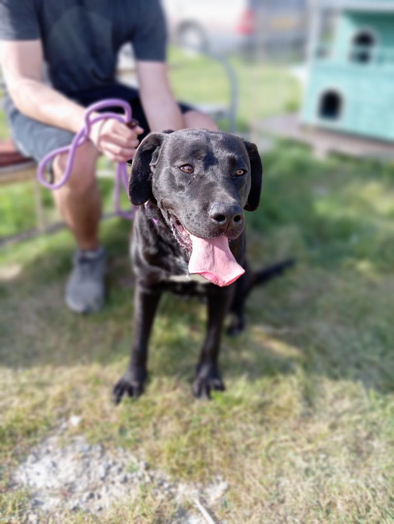 Hon är en riktigt vacker tik, antagligen en labradorblandning. (Inga garantier förstås). Hon har verkligen den glada och positiva karaktären hos en labrador. Vi vet inget om Noras förflutna.🤷♀️ Och då vet vi så klart inte heller om hon någonsin har bott inomhus, så hennes framtida ägare får vara beredd på att hjälpa henne att lära sig vad det innebär att vara en familjehund.