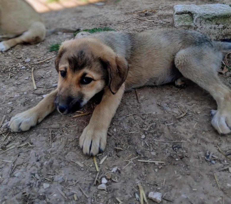 Nova är en nyfiken, orädd liten tjej som redan hunnit uppleva mer än många vuxna hundar. Hon föddes i ett industriområde 25 km utanför Kilkis i Grekland, precis vid en tungt trafikerad huvudväg där stora lastbilar och snabba bilar ständigt dundrade förbi. Mamman försvann tidigt, kanske skrämd av trafiken eller påkörd – det vet vi inte. Kvar blev Thea och hennes tre systrar, ensamma i ett område som aldrig var menat för små liv.