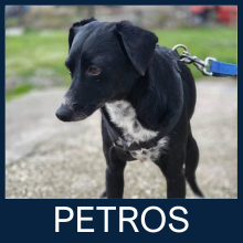 Petros är en hund som inte kastar sig fram till främlingar. Han tar hellre ett steg tillbaka och iakttar lite försiktigt. Men ger man honom några minuter och ett vänligt bemötande slappnar han av, och då märker man snabbt att han är en väldigt kärlekstörstande hund.