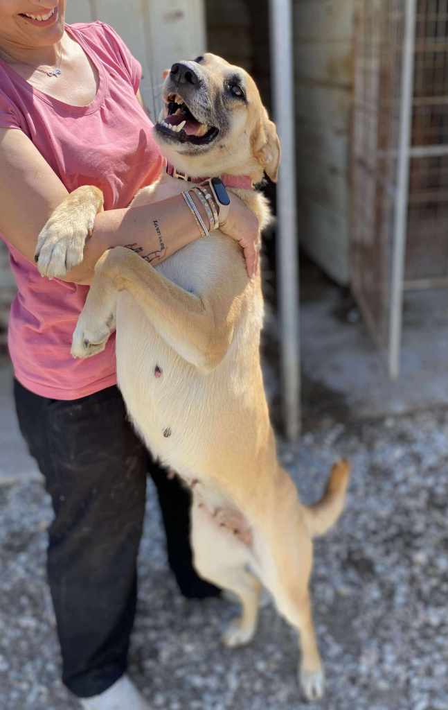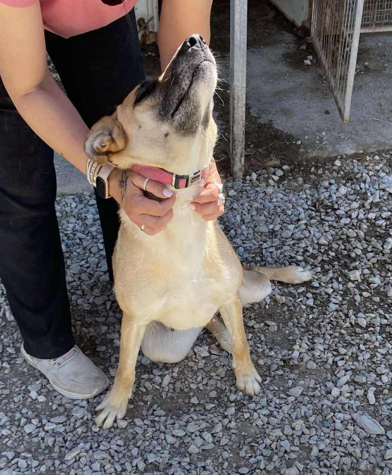 På sheltret har hon visat sig vara en riktigt trevlig ”gäst”. Hon är social, vänlig, lyhörd och går fint i koppel. Hon delar i nuläget sin lilla inhägnad med en hane. Hon fungerar också fint med de andra hundarna som hon mött på sheltret.