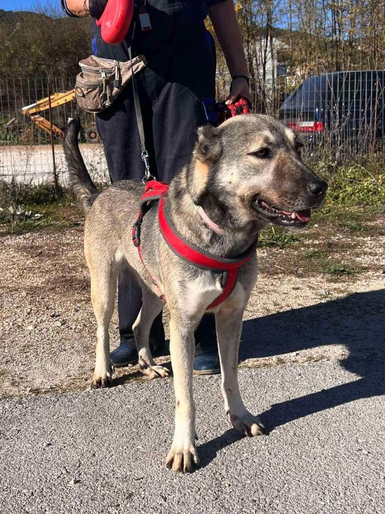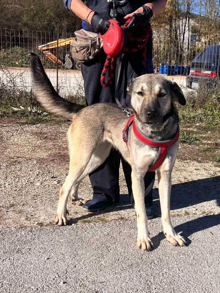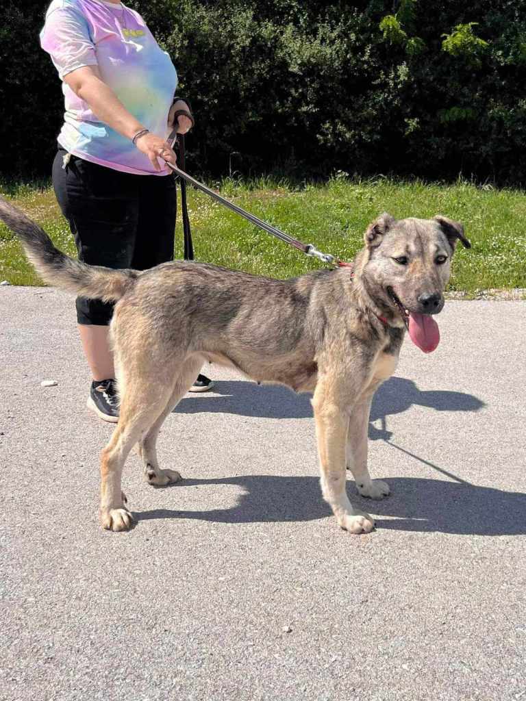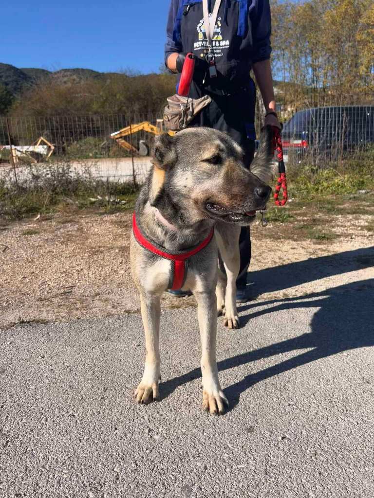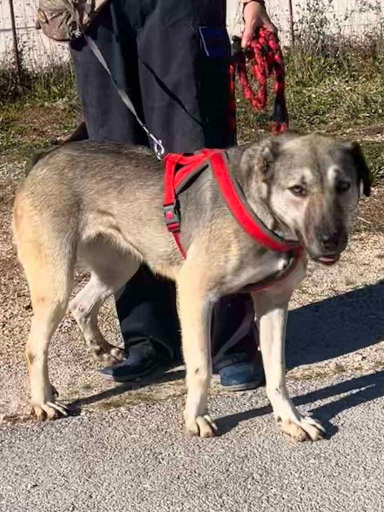 Stachty är social och vänlig mot alla hon möter- även främlingar. Hon är en lojal och mysig tjej, som gillar att bli kelad med. Hon är dessutom en riktigt vacker tjej av modell lite större. När hon hittades hade hennes ena öra kapats. Tyvärr är det vanligt att det görs i Grekland, då man tror att hunden ska höra bättre och då kunna vakta bättre. ![]()