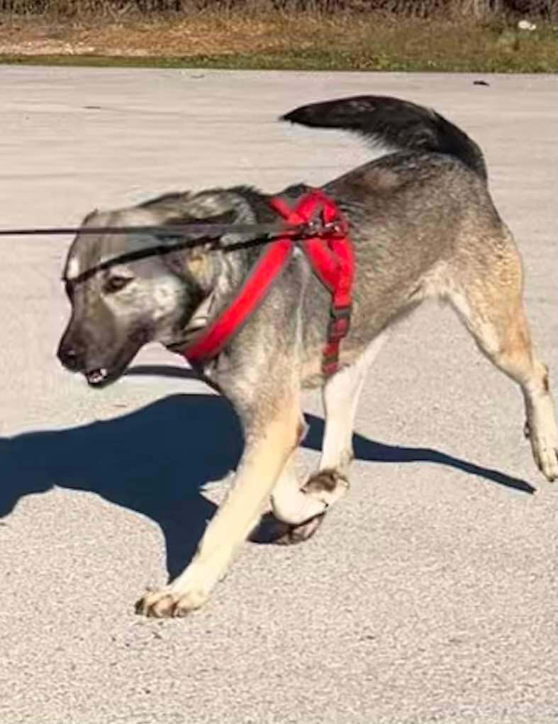 Stachty är ung och har nog aldrig bott inomhus, så hennes framtida ägare får vara beredd på att hjälpa henne att lära sig vad det innebär att vara en familjehund.