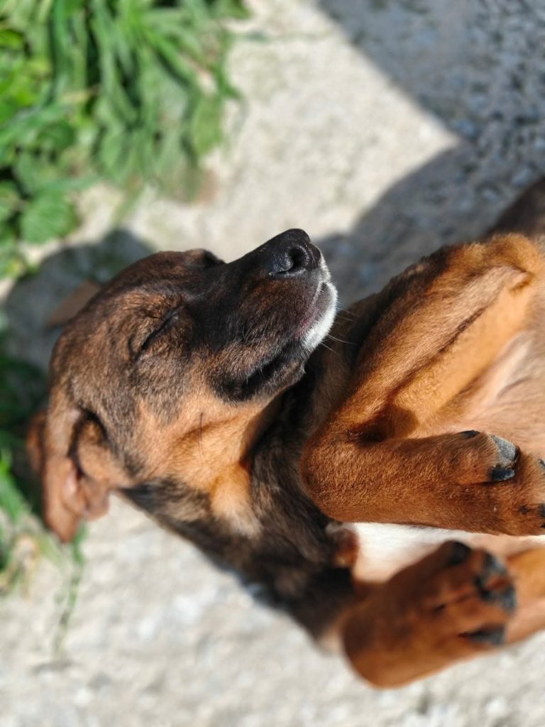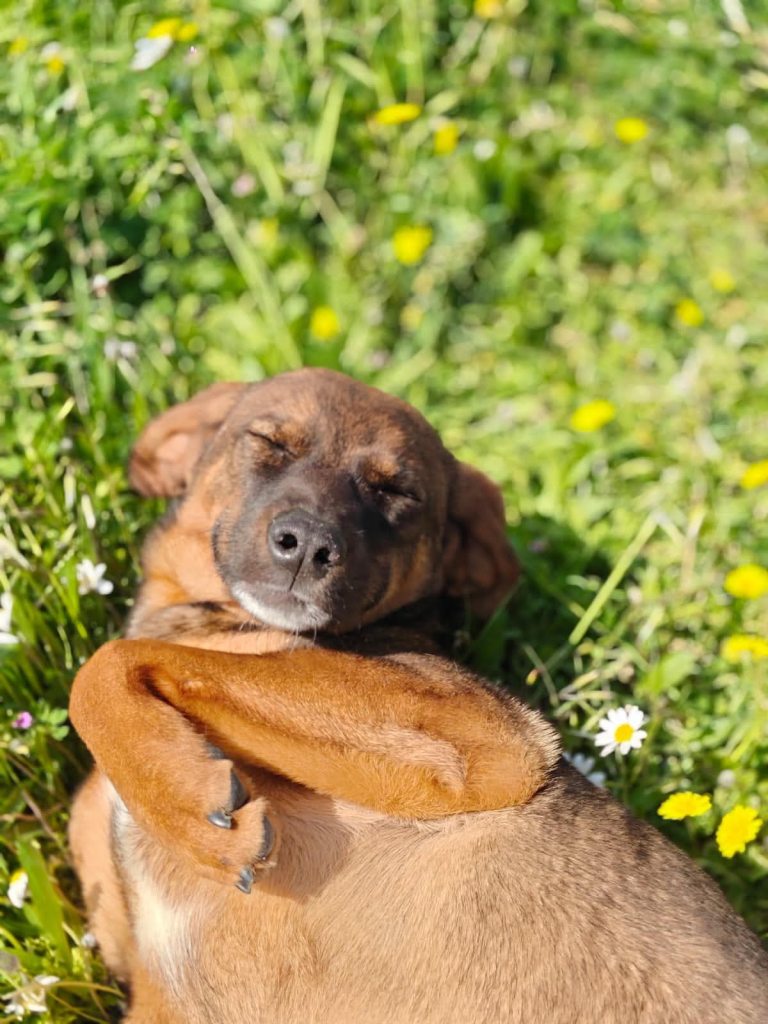 Tobby och hans bror (Coddy) hittades tillsammans med mamma Thelma på reningsverket på Lesvos. Tobby föddes i september 2025 och är alltså fortfarande valp. Han är väldigt mjuk i sättet och beskrivs som en social hund som tycker om närhet och att bli klappad. Samtidigt har han såklart energi och är lekfull, precis som en valp ska vara 💥☺️